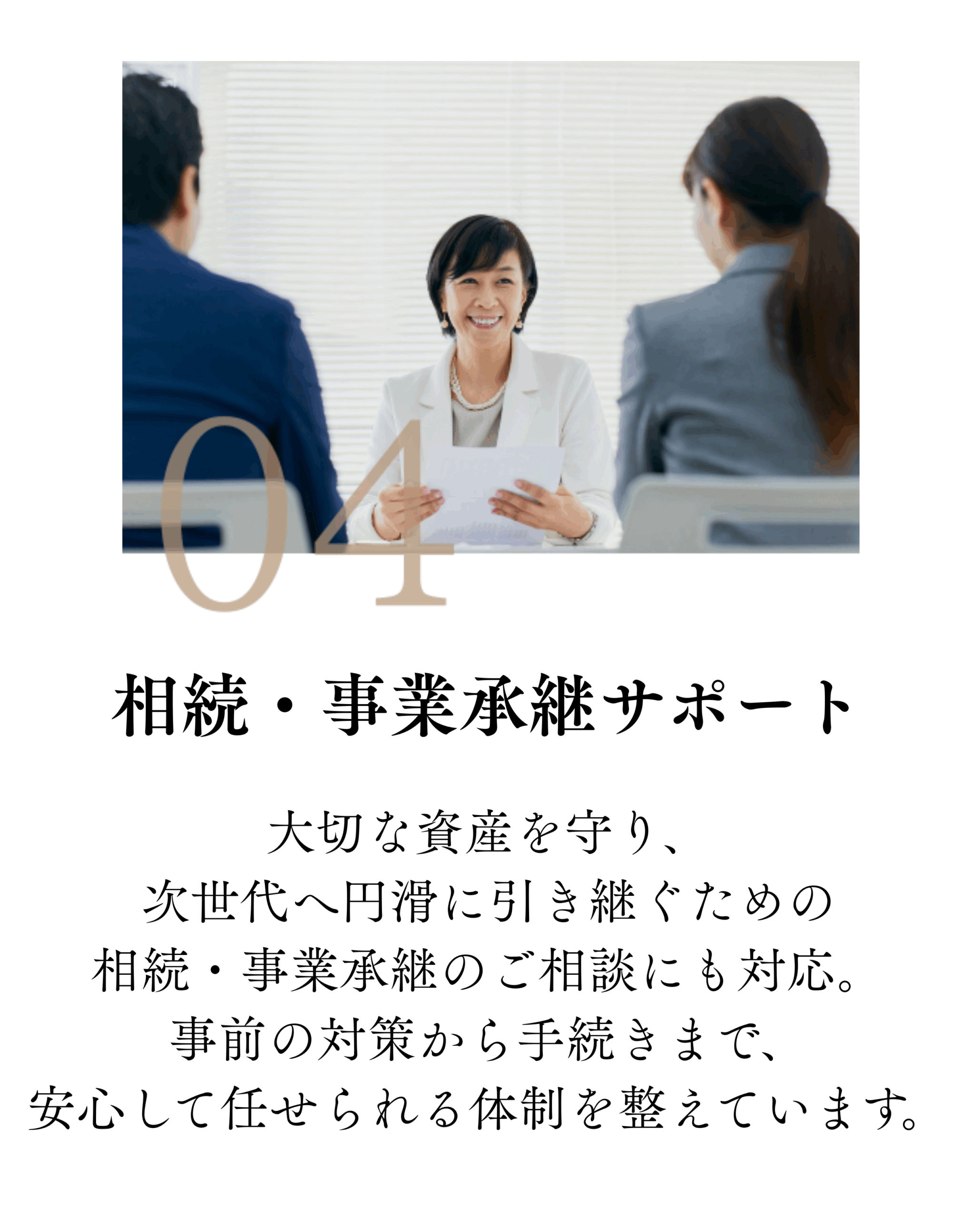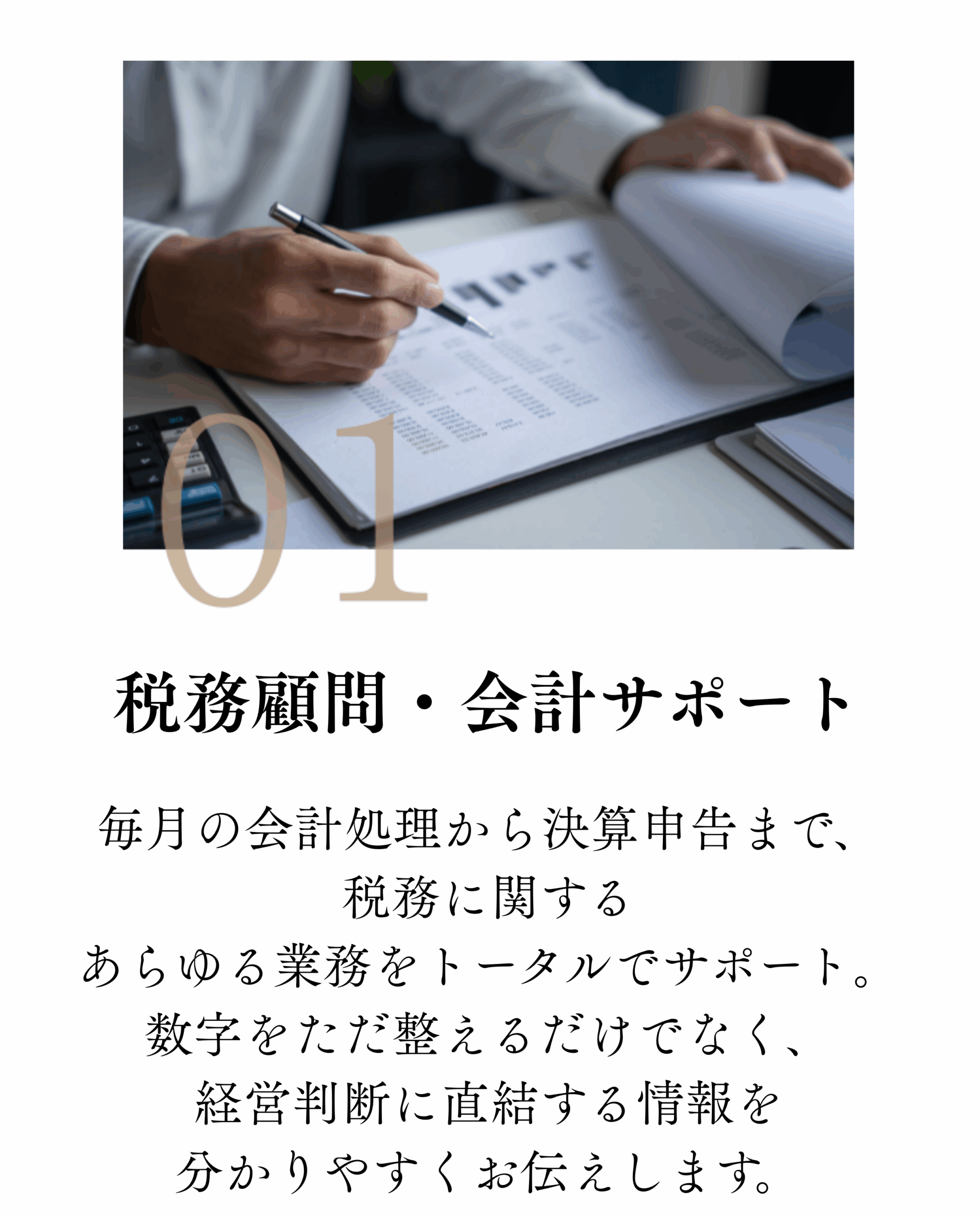 税務・会計のプロフェッショナルとして確かなサポートを提供しています。